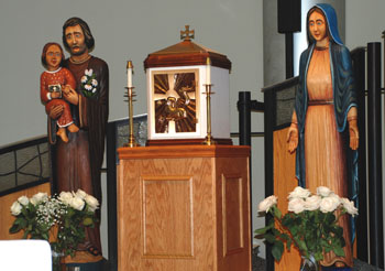 TAYLORSVILLE — There are a lot of new faces at St. Martin de Porres Parish, Taylorsville, and parishioner hand-picked them. There are new statues of the holy family, and 11 new stained-glass windows honoring saints new and old, and some yet to be canonized. "I am happy and looking forward to the future of this parish," Pastor Father Jan Bednarz said. "The saints remind us of how we should live our lives and they bring us closer to God." The stained-glass windows, created by Jenkyn Powell and Powell Brothers and Sons, were blessed and dedicated by Bishop John Wester Nov. 3. The Powells donated much of the labor. In addition to St. Martin de Porres, the parish’s patron, the new windows honor St. Joseph, St. Rose of Lima, St. Francis of Assisi, Blessed Kateri Tekakwitha, Pope John Paul II, Our Lady of Fatima, Blessed Mother Cabrini, St. Padre Pio, and Blessed Mother Teresa. "Not only is St. Martin the patron of our parish," Fr. Bednarz said, "but we have a first-class relic of him given to the parish by Bishop Weigand." Fr. Bednarz, a native of Poland, said he is especially grateful for the support of the church renovation project by the parish at large. The project included a new reconciliation room, a chapel of St. Martin de Porres, and a re-designed welcome space. "Parishioners were so generous, contributing financially and their labor to the windows, the statues, the new altar, ambo, and chairs." Throughout the church are the names of generous donors, on plaques and windows, including Lorraine Garrett, Luís Maldonado, José Celada, Bea Arnelas, and Dora Zucca. "We move forward," said Fr. Bednarz.