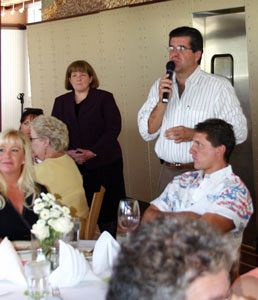 SALT LAKE CITY There was plenty of good food and fellowship as parents, teachers, and friends of Our Lady of Lourdes School in Salt Lake City gathered Sept. 11 to celebrate the school's progress, its tradition, and its future. The buffet supper, hosted by Tom Guinney, co-owner of the Gastronomy Restaurants at the Market Street Restaurant in the Cottonwood Complex, has become an annual fund raiser for the school. This is the second year Guinney has hosted the event. "This event is Tom Guinney's way of saying thank you for the education his daughters received at Our Lady of Lourdes School," said Kathleen Leonard, advancement director for the school. Parents, teachers, alumni, and friends of Our Lady of Lourdes School numbering more than 100, greeted each other at the buffet, then filled tables both inside the restaurant and on an outside patio. "This year we have been hoping to draw participants from the larger community," Leonard said. Our Lady of Lourdes School prides itself in a diverse student body and a commitment to providing a quality education to students of all economic groups. "We have students who are refugees from Sudan and we have students from more affluent families," Leonard said. "We are the school where everybody is somebody." The simple buffet fund raiser is designed so people can casually enjoy themselves, Leonard said. "There are no auctions and no pressure." Our Lady of Lourdes School was built in 1962 and opened in 1963. Throughout its history it has drawn students, Catholic and non-Catholic from the downtown Salt Lake City and University of Utah areas. Twice Our Lady of Lourdes School has been honored by the Martin Luther King Jr. Human Rights Commission. "We believe that well-rounded students are the cornerstone for the future," Leonard said. "Instructional programs are designed with this primary goal as the focus. The faculty and staff strive to immerse students in experiences that develop a sense of responsibility for people in our community and the larger world." This school year, Our Lady of Lourdes School begins the year with 223 students. It has the capacity for 260 students. Dave Spatafore, immediate past president of the Our Lady of Lourdes Parish Council, welcomed guests to the event, thanking Tom Guinney and John Williams of Gastronomy Inc., for their generosity. He then introduced Father William Flegge, pastor of Our Lady of Lourdes Parish. Fr. Flegge thanked those in attendance, especially parents of Lourdes students, whom he recognized for their great sacrifice in sending their children to a Catholic school. "We ended the last year in the black," Fr. Flegge said. "That is due in a large part to the sacrifices made by our parents and teachers." Spatafore introduced Judge Memorial Catholic high School Principal James Hamburge, Superintended of Catholic Schools Holy Cross Sister Catherine Kampaus and Holy Cross Sister Genevra Rolf, assistant superintendant of Catholic schools, Marty Schwartz, president of the Our Lady of Lourdes Parish Council, Former Lourdes Principal Catherine Moore, now a teacher at St. John the Baptist School in Draper, and Armando Venegas, the new principal of Our Lady of Lourdes School. Transplants from Southern California, Venegas said he and his family are making a comfortable transition. "I am getting to know the students at this wonderful school, and I have found them kind and loving. It is exciting that we are on the same lot with Judge Memorial Catholic High School. We have been able to watch the progress of the new athletic field. With Judge Memorial, we offer quality Catholic education from kindergarten through grade 12 on the same lot." Spatafore said this new annual fund raiser has become a wonderful event, and he challenged everyone there this year to bring another person with them next year. Leonard said other fund raising events planned for the school are the annual round-up, a dinner and auction held later this year at Prophet Elias Greek Orthodox Church, and the annual sale of holiday gift wrap. The school also sponsors the annual Leprechaun Lope, a 5-K and 10-K run and walk held in conjunction with the Hibernian Society's St. Patrick's Day parade. All fund raising events, Leonard said, contribute to the maintenance of the school, school equipment, and programs.