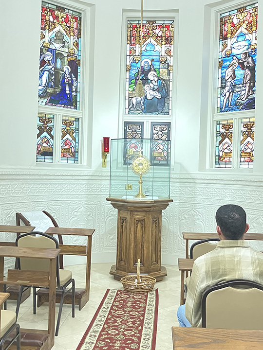 In an interview, Fr. Vialpando said the idea for the chapel came from a parishioner, Sue Taylor, and “I was all in right from the start because of our need to have the Eucharist. … It’s like a continuation of the Mass, where we could focus on the life of Christ, who would support us with his grace and blessings along the way. It could strengthen marriages, foster vocations, increase Mass attendance – all the blessings and grace and favors of God would be present there.”