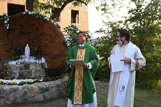 In addition, a new Marian grotto was blessed at St. Jerome Newman Center in Logan. The replica of the Lourdes grotto was built by Fr. Joshua Santos, chaplain.