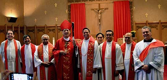El Obispo Solis dedicó la mayor parte de su homilía a predicar sobre Pentecostés; en sus comentarios se refirió a la celebración del aniversario del Misan Bayan. “Que bendición más grande el poder reunirnos con alegría y agradecimiento celebrando esta tan especial bendición de Dios, celebrando la Santa Misa con los filipinos y con otros amigos Católicos un domingo al mes a lo largo de todos estos años,” dijo el Obispo. “Este aniversario habla mucho sobre la fidelidad de Dios. Es una clara manifestación de la prescencia de nuestro Señor en nuestras vidas, en nuestra Iglesia y en nuestra comunidad. Son el poder y los dones del Espíritu Santo que los sostienenos y animan a reunirse para vivir nuestra fe y darle a conocer a los demás que Dios siempre nos acompaña; que Él es fiel a su promesa y permanece con nosotros siempre.”