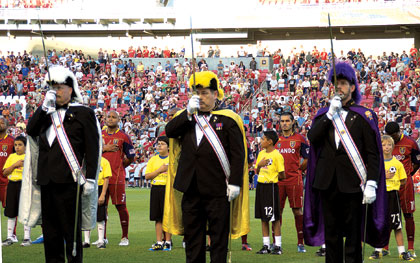 The Most Reverend John C. Wester, bishop of Salt Lake City, was the guest of honor in the Faith & Family Night at Rio Tinto Stadium as Real Salt Lake took on the New York Red Bulls. The Knights of Columbus color guard marched with the bishop and Catholic Boy Scouts onto the field.