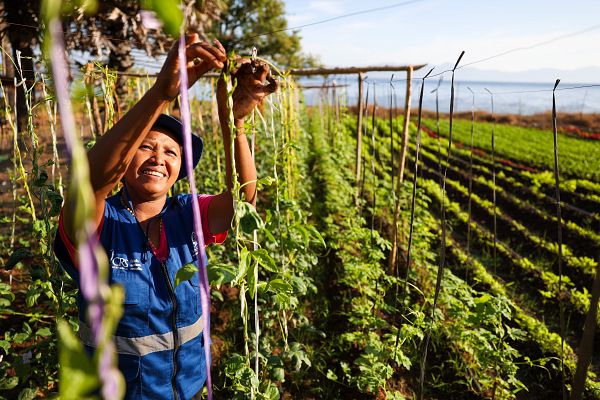 The group also maintains a community garden. They grow vegetables like beans, eggplant and water spinach to provide healthy food for their families. They use a drip irrigation system that conserves water so the vegetables can grow even during a drought. Evita and her group members use the garden to teach people from other communities how to start their own.