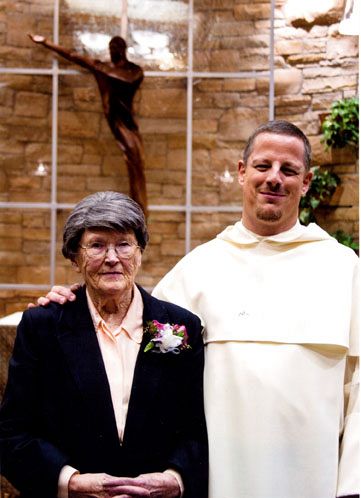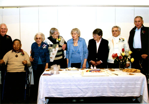 Saint Catherine of Siena/Catholic Newman Center honored its members who are 80 or older with a special blessing that was given by Dominican Father Peter Do at the end of Mass on Feb. 19. The Mass was followed by a reception. The community also celebrated the 90th birthday of Loretta Nilolai (right, with Dominican Father Carl Schlichte, pastor), a long-time active parishioner. Two members of the group, Lois Connaty and Eileen O'Hare, are confined to care centers, and those at the reception recorded messages in books to be sent to them. Another group member, Chuck Jahne, was out of town. Messages were recorded for him as well. These ‘Ageless Achievers' have been active servants of Christ for many years. From left are Ageless Achievers Jim Gander, John Tong, Stella Walkowski, Sr. Julie Maher, Bea Trople, Loretta Nickolai and Bernice and Ray Gronek.
