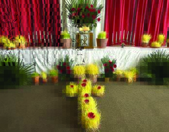 On Holy Thursday, after the altar was set up, the students came in groups to see it over the course of two hours. Once exposed to the light, the grain began to change colors.