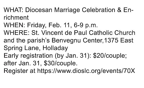 SALT LAKE CITY— The Diocese of Salt Lake City’s Annual Marriage Celebration & Enrichment, scheduled for Feb. 11, will be shorter than those of previous years due to the ongoing pandemic and to make it more accessible to married couples of all ages.