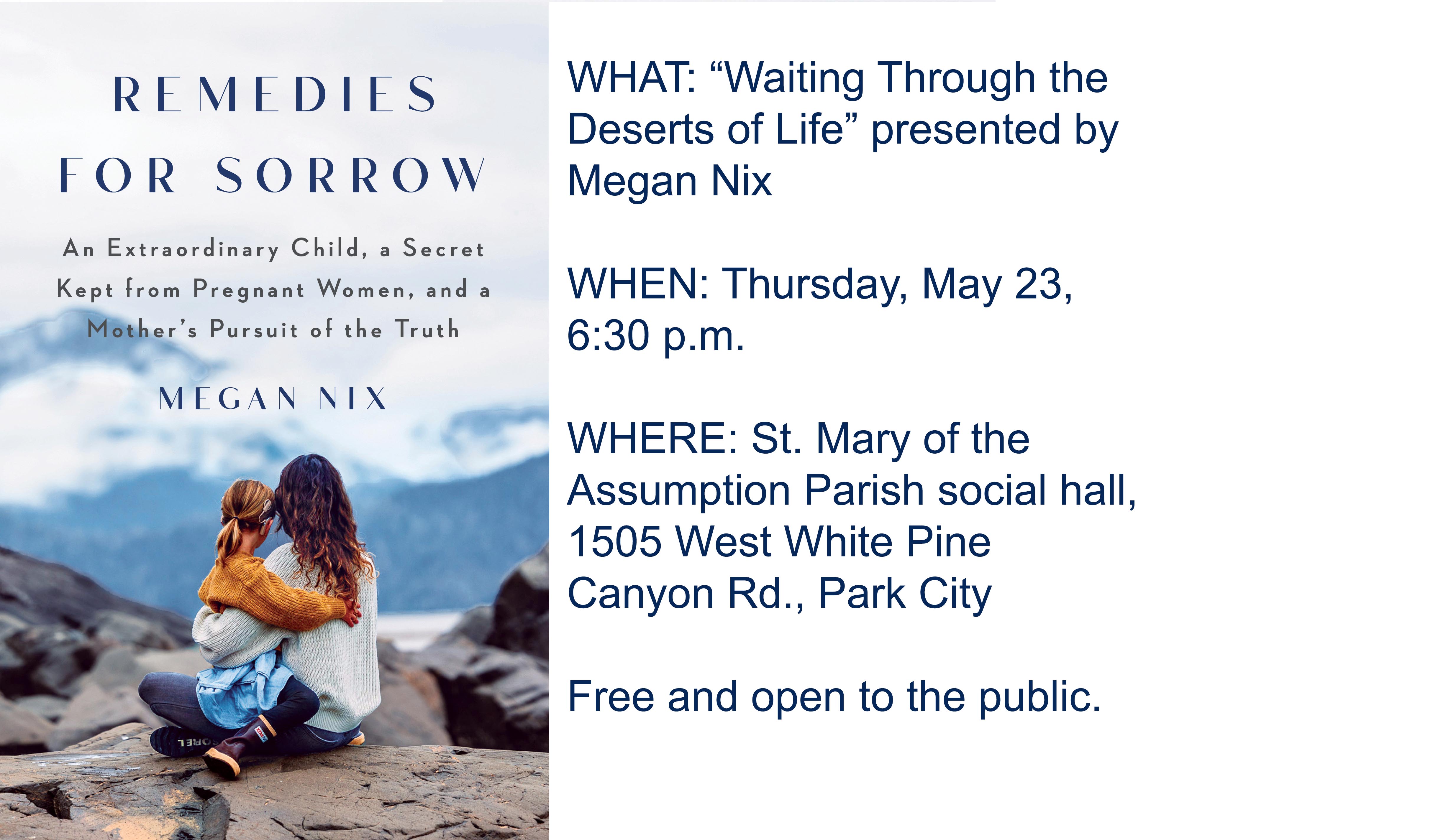 Nix will be at St. Mary of the Assumption Catholic Church in Park City on May 23 to give a presentation titled “Waiting Through the Deserts of Life.”