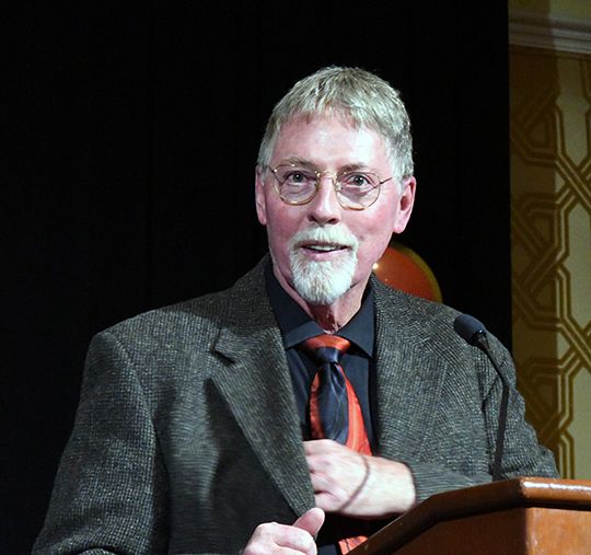 Because the Fotheringhams are serving a mission in California with The Church of Jesus Christ of Latter-day Saints, they were unable to be at the dinner. The award was accepted by their son, Nate Fotheringham, who read comments sent by his father.