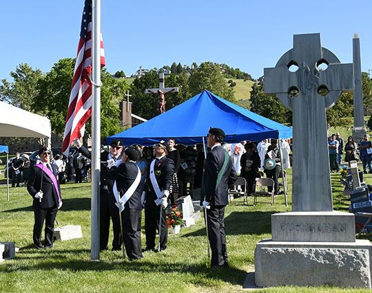 SALT LAKE CITY — The traditional Memorial Day Mass at Mount Calvary Catholic Cemetery in Salt Lake City was held under sunny skies this year. Bishop Oscar A. Solis presided; concelebrants were Msgr. Colin F. Bircumshaw, vicar general; Msgr. J. Terrence Fitzgerald, vicar general emeritus; and several priests of the diocese, including Father John Evans, who will become vicar general in August upon the retirement of Msgr. Bircumshaw.