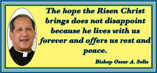 In this Jubilee Year, we are called to be “Pilgrims of Hope,” to walk together in faith and trust in the promises of our Savior. As Easter people, we move beyond the tomb with the conviction to follow Christ with trust in God’s providence and the assurance that his love will never fail us. So, let us courageously proclaim the Good News with joy that out of darkness and suffering comes new life, for Christ is risen, Alleluia!