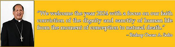 Greetings of Christ’s peace and love! We welcome the year 2024 with a focus on our faith conviction of the dignity and sanctity of human life from the moment of conception to natural death. This is very relevant as we face an alarming scenario in our world. It is unfortunate and sad that the culture of death that attacks the precious gift of life from God is creating havoc and chaos.