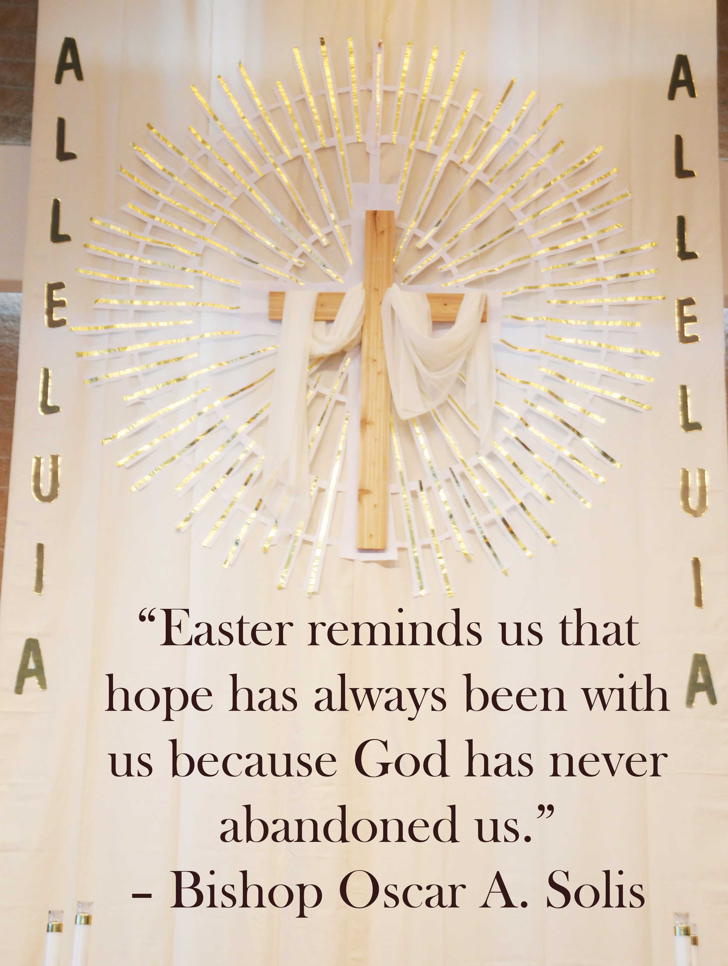 Saint John Paul II said, “We are an Easter people and Alleluia is our song.” This is what we are called to proclaim and to live as Christians. Let us open our hearts to recognize God’s blessings and to proclaim the glorious truth of our faith: Christ has died, Christ is risen, and Christ is alive! Let us all come out of the shadow of suffering and death, walk in the light of Christ and embrace the newness of Easter life with joyful and grateful hearts.
