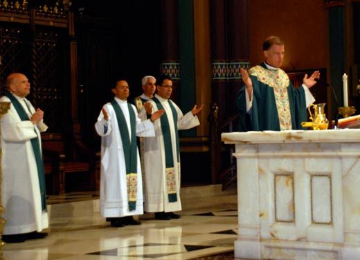 SALT LAKE CITY — On the 10th anniversary of his episcopal ordination, the Most Reverend Bishop John C. Wester of the Diocese of Salt Lake City spoke of how the Catholic Church celebrates service. "I was ordained a bishop Sept. 18, 1998, in the Cathedral of St. Mary in San Francisco, Calif., but it was not my day. It was the church’s day to celebrate ministry." He drew attention to the painting of Christ as the Good Shepherd in the Cathedral of the Madeleine. "Today we celebrate Jesus the Good Shepherd, who works through all of us... I serve you as bishop, but we all share in ministry." The bishop said there were three specific elements to Jesus’ ministry: Jesus was merciful; his ministry included everyone; and Jesus’ ministry was one of love. "Jesus served with compassion, and we have to serve that way, too. Bishop Wester told the story of celebrating a Mass in Spanish. A little boy walked up to him and said, "Do you speak English? "That’s what inclusivity means," he said. "Jesus sends me to you and you to me so that we can all speak the same language of love. Listen to how God is calling us so that we can respond to him by being good shepherds."