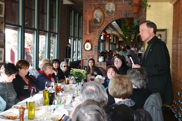 SALT LAKE CITY — Diocesan Council of Catholic Women board members and friends invited the Most Rev. John C. Wester, Bishop of Salt Lake City, to be their guest speaker at Tucci’s Cucina Italiana Restaurant Dec. 19. "We’re so grateful that he took this time to meet with us," said Amy Kennedy, DCCW president and Cathedral of the Madeleine parishioner. "Hearing his personal input, his pastoral ideas and how specifically it relates to what we can do as a council and as individuals inspires us." The bishop addressed some of his priorities for the Diocese of Salt Lake City, including stewardship, the Year of Faith, the importance of Catholic Community Services, the leadership of the DCCW, the Diocesan Pastoral Council and vocations, and saved time for questions. "Stewardship remains our number one priority in the diocese," Bishop West said, adding that the effort, which began last year, is uneven throughout the diocese. "Some parishes are very much into it, some are coasting and some are just getting starting. There are reasons for that; some of the parishes have been building and some are more organized than others." Nevertheless, "it’s important to remember that stewardship is not a program, it’s a way of life," the bishop said. "So, in dealing with the parish and councils, you have to politely and kindly remind people that it encourages us to relate to God and with one another with an attitude of gratitude. We need to deepen our sense of stewardship because it’s spirituality; a way of being Catholic, and it’s specific and important for us as a community and as a diocese." The bishops’s second priority is the Year of Faith, he said; the year was proclaimed by Pope Benedict XVI, it began Oct. 11 and ends Nov. 24, 2013. The bishop noted that the DCCW already has programs on its website that assist members in learning about the faith, celebrating the faith liturgically and living the faith through works of charity, which are the three pillars of the Year of Faith. DCCW women are in leadership roles; people take them seriously and seek them out to answer questions, said Bishop Wester. They also have many roles as wives, mothers, single women, daughters, sisters, grandmothers, nieces and aunts, but they also have roles in the diocese, he said. "But given your many roles, what are you doing personally to engage in the Year of Faith?" he asked them, noting that his personal goal is studying the 16 chapters of the Gospel of Mark. The DCCW has been involved with Catholic Community Services in its Refugee Resettlement program, and the bishop thanked them for supporting CCS, which he said is a vital part of the diocese. He also spoke of the Latino Ministry pastoral plan and the fact that 80 percent of the Catholics in Utah speak Spanish. "We need to reach out to the Latinos, support them, minister to them and integrate them," he said. "We are just one diocese – parishes that flow into one diocese." In addition, the bishop encouraged the DCCW to support the different ministries in the diocese, including the Diocesan Development Drive and its ministries and the Diocesan Pastoral Council by getting to know its representatives so they can relay suggestions or concerns. He also spoke of the importance of the role of deaneries in a diocese as large as Utah, the Intermountain Catholic newspaper and its importance as a tool for communication and faith formation in the diocese, and he asked the DCCW to pray for the vocations of priests, religious and lay ecclesial ministers. The DCCW women said they were inspired by what the bishop had to say. Margaret Cragin-Masarone, a Saints Peter and Paul parishioner, liked the bishop’s comment that DCCW women are leaders, she said. "It also was very generous of him to give us his time," added Pamela Heimbecker, of Saint Thomas More Parish. "I liked his concept that we are one large diocese. In other words, communication and engagement with one another will be a key to unifying us."