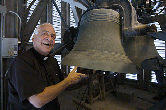 In the days leading up to the Sept. 10 release of the Bishop’s Dinner video, shorter videos focusing on specific aspects of the cathedral’s operations, such as preparing for the Mass and playing the organ, were released. One of the segments of the Bishop’s Dinner video was of Fr. Diaz giving a tour of the cathedral’s bell tower.
