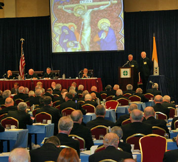 BALTIMORE – The stones of the newly-renovated Basilica of the National Shrine of the Assumption of the Blessed Virgin Mary in Baltimore, rededicated just the day before, spoke to members of the United States Conference of Catholic Bishops (USCCB) today as they undertook, during their annual fall meeting, the restructuring of the conference. Like so many voters on other issues this month, the bishops had to get used to electronic voting machines, though theirs were wireless. After a few test ballots, they voted in new committee chairmen, even though the restructuring plan might eliminate the need for some of those committees. The reorganization of the USCCB, slated to take effect in 2008, is aimed at more collaborative working relationships between offices and ministries, said Archbishop Bishop Michael Sheehan of Santa Fe, N.M. The restructuring had been recommended to the bishops’ June meeting by the Committee on Priorities and Plans, chaired by Archbishop Sheehan. The restructuring involves reducing the current 68 committees, subcommittees and task forces of bishops to 34. Staff offices corresponding to the committees will be restructured, contributing to a $1.9 million reduction in the annual diocesan assessment toward the USCCB annual budget, Sr. Mary Ann Walsh said in a press release prior to the meeting. "The conference budget for 2007 is $139 million, with $11.9 million, or nine percent, coming from the assessment. The rest of the budget comes from national collections, government contracts, foundation grants, and sales and royalties." Proposed priorities for the 2008-2011 years include an initiative supporting marriage, vocations to the priesthood and religious life, faith formation based on sacramental practice, and the life and dignity of the human person, the press release said. The bishops also will be asked to consider adding a fifth priority to address cultural diversity in the Church. Introducing the strategic plan for restructuring, Archbishop Sheehan said, "We are at the point at which we will work in a more efficient and collaborative way." The process was a pained one, with many bishops speaking out in favor of retaining offices, committees, and staff positions sacrificed by the strategic plan. Archbishop Sheehan and his committee stood firm. The proposal for the major restructuring of the USCCB passed by a vote of 213-19.