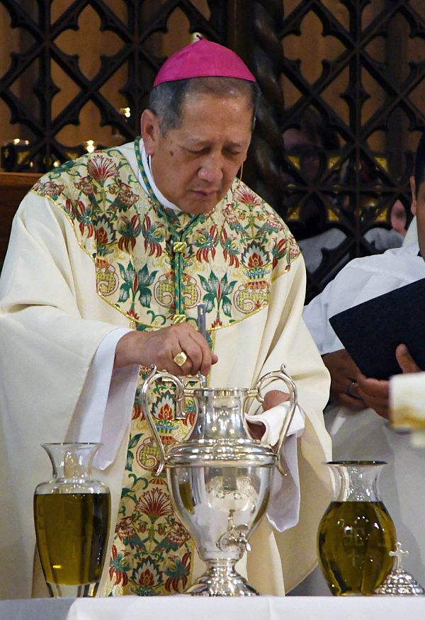 During the Mass, the bishop blessed and consecrated “the holy oils that will be used during celebration of the sacraments throughout the diocese during this coming year,” he said, speaking in English and Spanish.