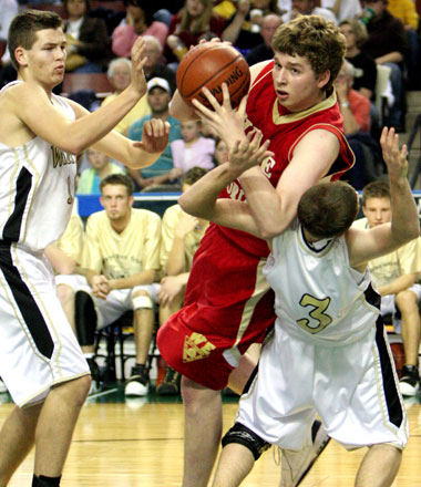 SALT LAKE CITY — The Judge Memorial Bulldogs became the State 3A Basketball Champions with a 77-65 win over the Wasatch Wasps at the E Center Feb. 22. This was their second state title in three years. "This team improved as much as any team we have ever had," said James Yerkovich, Judge Memorial Catholic High School head basketball coach and vice principal. "We lost some really good college-level athletes last year, and these guys just stepped in and kept getting better and better," said Yerkovich. "We can look at this season in four segments." Yerkovich said their pre-season schedule was the toughest one they have ever played against 4A and 5A teams and they came out with an outstanding record, which led to their later success. They had eight wins and three losses. In two of the losses, they were only one possession away from winning in the games against Skyline and Brighton High Schools. We were close to having a record of 10-1. "In the second segment of play, we pretty much dominated Region 10 with a record of 10-0, winning all of our games," said Yerkovich. "Part of that is tradition now, because over the last four seasons we have won 33 straight league games. This team was a big part of that winning 10 games themselves. We feel fortunate to have that happen, because we also know how easy it is to lose." The third segment of Judge Memorial’s season was the State Tournament. They defeated Ogden High School in the first game 78-54 on their home court. "That game propelled us into the quarter-finals," said Yerkovich. "We had to play one of our league opponents, Uintah High School, and we beat them 68-54. Then we played our biggest and most challenging game, the semi-final game against Bear River. We knew it was going to be a big game. "I don’t know if I have ever witnessed a game where both teams were playing harder than during our Bear River game," said Yerkovich. "It was an absolute war, and our team just hung tough and led most of game by six to eight points. Then Bear River came back within two points late in the game, and we made four or five big plays in the last two minutes which got us a nine point margin and the win. "That win brought us to the championship game, and the fourth segment of our season," said Yerkovich. "We played Wasatch High School. We got control of the game early and maintained our lead, as we had twice before at Judge during the league. I was worried our team would run out of gas after the Bear River game, but they responded really well." Yerkovich said the team rotated, and everybody got to play in the state championship game. It was a rewarding experience. As well as they played, Yerkovich felt the whole atmosphere was pervaded by their "We" philosophy because everybody was supporting each other and it was great to have everybody contributing in the championship game. In mentioning the players, Yerkovich said Noel Hollingsworth, a senior, has had an almost automatic double/double in rebounds and scoring. He averaged 20 points a game and had 14 rebounds a game this year. He also had a great post presence. Yerkovich said point guard Stallon Saldivar, a junior, had an outstanding tournament and was picked as the Most Valuable Player. He can shoot, pass, plays hard, and is competitive. He said Oliver Hughes, a junior, is somebody who frustrates opponents, and is one of the best three-point shooters Judge has ever had. Yerkovich said one of the most valuable players is junior Dee Crandle. He is our stopper on defense. Crandle has had many great games all year long where he picks opponents best players and takes them out of the game. "Walker Gale, a sophomore and a starter, is improving a lot," said Yerkovich. "He had a very good tournament. He is an outstanding athlete who can really jump. "Senior Chris Sasich is the heart of this team," said Yerkovich. "He is the hardest worker, best listener, and is somebody everybody would love to have on their team. "Senior Matt Jimenez is a very good athlete with a good attitude," said Yerkovich. "He made some definite contributions in some big situations."