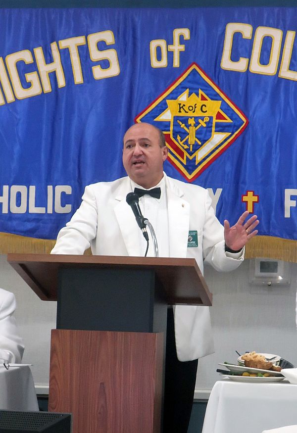 Lopez animó a sus compañeros Caballeros a ser activos en la protección de la fe, diciendo que “conforme avanzamos es importante que nos unamos para la cons-trucción de la comunidad Católica.”