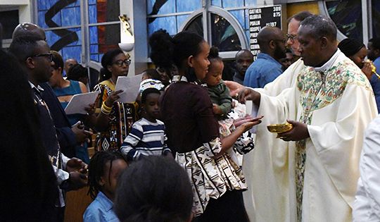 Cardinal Antoine Cardinal Kambanda, Archbishop of Kigali, Rwanda, celebrated Mass at St. Martin de Porres Catholic Church in Taylorsville on Sept. 12. The Stirling Foundation invited the cardinal to Utah to promote religious dialogue; among other items on the agenda during his visit were a tour of the The Church of Jesus Christ of Latter-day Saints’ Bishops’ Storehouse and lunch at the Alta Club with representatives of the Stirling Foundation and Father Langes Silva, judicial vicar of the Catholic Diocese of Salt Lake City.