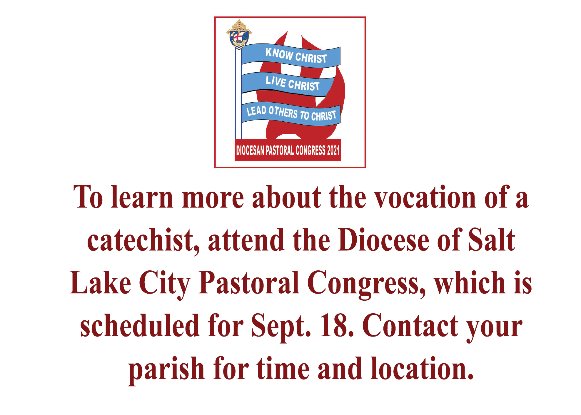 These religious educators share their spiritual journeys and help others understand that our Lord is a God of love, mercy and forgiveness. To become more skilled in this vocation, they study the faith and delve into the Scriptures. Formation and training help catechists accompany people into the mysteries of our beliefs. They speak of Christ’s saving grace and they walk with seekers through the joys and challenges of life. With hope-filled hearts, catechists echo the faith in their roles as priests, prophets and kings, thus fulfilling their baptismal promise to help others recognize and embrace the love of Christ.