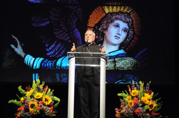 SALT LAKE CITY — The ninth annual Bishop’s Dinner brought about 500 people to the Grand America on Sept. 20 to benefit the Cathedral of the Madeleine. "The cathedral is not just a building, it’s not just a historic site, it’s not just in the center of your city, right in the midst of where we live, but it is a place of transcendence that lifts our minds and hearts to God by the beauty and the symbols and the richness of the music and all the wonderful dimensions of this great cathedral," said the Most Rev. Gerald F. Kicanas, Bishop of Tucson, who was the keynote speaker. A cathedral, Bishop Kicanas added, "was built for worship, for giving praise and glory to God. A cathedral breathes in the atmosphere of prayer. That is certainly what happens when people come, not just to see the beauty of the place, but to be uplifted." Among the dignitaries who attended the dinner were the Most Rev. Gerardo Humberto Flores Reyes, Bishop emeritus of Guatemala; Elder M. Russell Ballard, a member of the Quorum of the Twelve Apostles of The Church of Jesus Christ of Latter-day Saints; Bishop Scott B. Hayashi of the Episcopal Diocese of Utah; the Very Rev. Ray Waldon, dean of the Cathedral Church of Saint Mark in Salt Lake City; Mexican consul Socorro Rovirosa; Salt Lake County Mayor Peter Corroon; and numerous priests from the Diocese of Salt Lake City, including Monsignor Colin F. Bircumshaw, vicar general; Monsignor Joseph M. Mayo, rector and pastor of the Cathedral of the Madeleine; Monsignor M. Francis Mannion, who gave the opening prayer; and Monsignor J. Terrence Fitzgerald, vicar general emeritus and honorary chairman of the event. The dinner was dedicated to Msgr. Mannion, the Cathedral’s pastor from 1986 to 2000, who oversaw the interior renovation. Msgr. Mannion also "was so instrumental in developing the kinds of programs that are so much a part of the Cathedral fabric," Msgr. Mayo said. Bishop Kicanas said the presence of so many people from other faiths at the dinner was a tribute to the Utah community. "Tonight we get a glimpse of hope – people are willing to share their resources to continue to make this beautiful place of which we are so proud something for our children and our grandchildren and for generations to come," he said. The Cathedral, he added, "has a mission of purpose to be a place of worship, to be a place of beautiful music lifting our hearts and minds to God, a place where people can learn about their faith and the richness of their faith; a place where people in need can come and call home.... This can’t be just a building – it has to be a place of mission." The Most Rev. John C. Wester, Bishop of Salt Lake City, echoed these thoughts in his remarks. The Cathedral belongs to the Diocese of Salt Lake City, Bishop Wester said, "but it’s more than that. It belongs to our community, it belongs to Utah. It is a place where all are welcome, and it’s a place that you make possible. Yes, we stand on the shoulders of giants, but we all have to step forward and be giants to continue such a legacy, to continue such a beautiful building." During the dinner, a video was shown that depicted various Cathedral ministries: liturgies, altar servers, the Spanish Masses that began in 2004, the Good Samaritan program, the Madeleine Choir School, the Eccles Organ Festival and the Madeleine Festival of the Arts and Humanities. The Cathedral "serves as a beacon in our community as something special, something more, something beyond our horizon," Bishop Wester said in his remarks at the close of the dinner. "It reminds us of all of those who have gone before us, who have left us such a beautiful and precious legacy. Its grandeur and splendor deepen within us a sense that we are humble servants, humble stewards, who have been charged to care for this beautiful edifice. Its quiet beauty beckons us to reach more deeply into our souls, to a place where God speaks to tenderly and lovingly. It’s truly a window into the depths of God’s love and into the hearts of our neighbor."