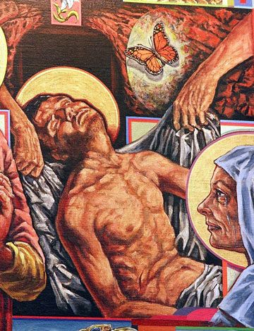 SALT LAKE CITY — It would take a book of considerable length to do a full study of the hundreds of Christian symbols in the Cathedral of the Madeleine – in its Stations of the Cross, its murals, its stained glass windows, its statuary, and its woodwork. At the request of the Intermountain Catholic, retired Salt Lake Tribune photographer Deacon Lynn Johnson took his camera in search of symbols particularly pertaining to Easter and the Eucharist. Some of the elements he found grace this special Easter issue of the Intermountain Catholic, from its front cover with the risen Christ, a detail from a stained glass window, to our Easter section cover, the stained glass image of the risen Christ with a shovel as he came upon Mary Magdalene weeping in the garden. ("She though it was the gardener." Jn: 20) Of course, two of the most popular Christian symbols are those of fish and bread. Deacon Johnson, who conducts tours of the cathedral on a regular basis, said when bread is seen on top of fish it indicates Christ. The basket of bread on the fish’s back indicates the body of Christ – the Eucharist. In the 1950 pamphlet "Symbols in Christian Art: A Popular Explanation," Robert J. Voigt explained: "...animals are used much more frequently than plants, land animals more so than sea-animals, fish more so than other sea-animals." Deacon Johnson found some flying symbols, two of them suggesting resurrection, and one symbolizing the Eucharist. The Religion Facts web site (www.religionfacts.com) relates that the butterfly, "has long been a Christian symbol of resurrection, for it disappears into a cocoon and appears dead, but emerges later far more beautiful and powerful than before." Another, lesser known symbol of the resurrection is the mythical phoenix, which Voigt wrote rises from its own funeral pyre (either one the bird built himself of myrrh and frankincense, or a pyre already existing), and is consumed by the fire. The phoenix resurrects perhaps as a worm from the decaying flesh. "This bird took the nest with the bones and flew it to Heliopolis, Egypt, for burial..." In another version, the phoenix, ready to die, "alights on a funeral pyre. With his flapping wings he ignites the fire in whose glowing flames he is consumed. From the ashes a new bird springs forth to live for the next five centuries. "...The apparent quality of the phoenix’s going down in death so as to rise to a new life on the third day made that bird a symbol of Christ’s resurrection." An even lesser known Christian symbol is the pelican, which is portrayed in many places in the Cathedral of the Madeleine, including under the crucifix above the original main altar of the church. A red stain on the bird’s beak and its habit of pressing its bill against its breast suggests the bird is opening its breast to feel its young, as we are fed with the Eucharist. Voigt relates another version in "Symbols of Christian Art" left to us by St. Jerome... "that serpents kill the young pelicans, but the mother pours her blood over them, bringing them back to life."
