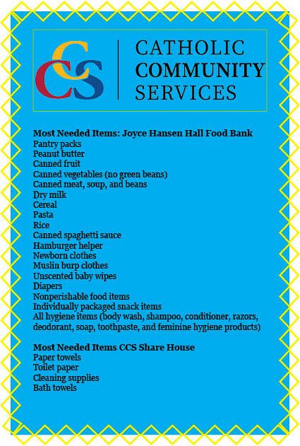 SALT LAKE CITY/OGDEN — “Since 1945, Catholic Community Services of Utah has been empowering people in need along the Wasatch Front to reach self-sufficiency,” states the organization’s web page. CCS operates the Weigand Homeless Resource Center and St. Vincent de Paul dining hall in Salt Lake City, and the Joyce Hansen Hall Food Bank in Ogden, offering a variety of programs that provide food and income security, homeless resources, refugee and immigration services, among other assistance.