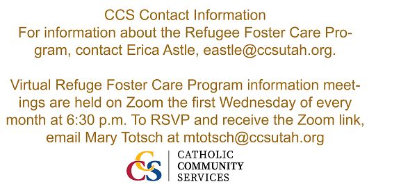 Another opportunity to help at CCS is with the organization’s Refugee Foster Care Program, which is looking for foster care families.