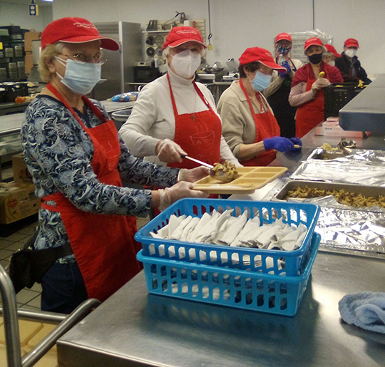 The dining hall is open seven days a week; each day the dining hall needs about 60 volunteers to help prepare and serve the meals.