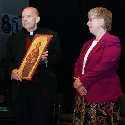 SALT LAKE CITY – Educators from the diocese’s 14 Catholic schools gathered in the Judge Memorial Catholic High School Auditorium March 9 to honor three of their own. Two teachers and an administrator were selected out of 12 outstanding educators. First, the teachers honored Msgr. J. Terrence Fitzgerald, then-diocesan administrator, with the Christ the Teacher Award. After breakout sessions and a Mass celebrating Catholic Educators Day, Holy Cross Sisters Catherine Kamphaus, superintendent of Catholic schools, and Genevra Rolf, associate superintendent presented Msgr. Fitzgerald with an icon of Christ and a Christ the Teacher Award plaque. Msgr. was recognized for his dedication to Catholic education, his years spent as director of Catholic Relief Services of Utah, as superintendent of Catholic schools, and his two terms as president-rector of Mount Angel Seminary in St. Benedict, Ore. Surrounded by his brother priests who serve as Catholic school administrators, Msgr. Fitzgerald recalled that early in his priesthood, then-Bishop Joseph Lennox Federal sent him to Catholic University of America in Washington, D.C., to earn a degree in social work. "He told me I would head up Catholic Charities," Msgr. Fitzgerald said. "It seemed that wherever I went there was no money. "As teachers, we have such an exciting ministry," Msgr. Fitzgerald told the teachers. "As teachers, we have a unique opportunity to have such an impact on our diocese." Acknowledging the many hours Catholic school teachers spend preparing for class and the many sacrifices they make to provide quality Catholic education for the diocese’s children, Msgr. Fitzgerald said everyone who teaches in our Catholic schools deserves the Christ the Teacher Award. Each of the 12 outstanding educators for 2007 was recognized, introduced individually by the principals of the schools in which they teach. The 12 included: Angie Algarin, language arts teacher at St. John the Baptist Middle School, Draper; Angela Crossman, first grade teacher at Blessed Sacrament Elementary School, Sandy; Robyn Giovacchini, assistant principal at St. Vincent de Paul Elementary School, Salt Lake City; Andrea Hall, sixth grade teacher at the Madeleine Choir School in Salt Lake City; Jim Hamburge, principal at Judge Memorial Catholic High School, Salt Lake City; Rhea Hristou, second grade teacher at St. Vincent de Paul Elementary School; Kathleen Kilby, librarian and technology coordinator at St. Francis Xavier Regional School, Kearns; Shelly Luna, pre-kindergarten teacher at Blessed Sacrament Elementary School; Mary McConnell, social studies department chairwoman at Juan Diego Catholic High School, Draper; Matthew Pack, middle school language arts teacher at St. Olaf Elementary School, Bountiful; Sherry Stanley, social studies teacher at St. John the Baptist Middle School, Draper; and Mary Williams, kindergarten teacher at St. Vincent de Paul Elementary School. Combined, the 12 outstanding educators for 2007 have taught in the diocesan schools for 94 years. They were described with such glowing words and phrases as enthusiastic, possessing a love of learning, nurturing, and caring. They were recognized for pursuing their own further educations, for sharing the joy of learning, and inspiring children to love to learn, while expecting little thanks. The top three educators for 2007 were Jim Hamburge, principal of Judge Memorial Catholic School; Rhea Hristou, of St. Vincent de Paul School; and Mary McConnell of Juan Diego Catholic High School. Principal Dr. Gabriel Colosimo received McConnell’s award on her behalf because McConnell, who also is the school’s debate coach, was out of state at a debate tournament with the school team. McConnell had not wanted her name submitted for the award, Dr. Colosimo told the Intermountain Catholic, "Because she didn’t think she was worthy of it. This award acknowledges teachers’ work and dedication in front of their peer group and as representatives of their schools. The value of the award in intrinsic. It isn’t a $10,000 award and it isn’t external. Mary is extremely modest. She comes to education as a real minister who wants to use the many talents God had given her for the good of others." Dr. Colosimo described McConnell as a woman who had successful careers with the United States Government and in the private sector. "Mary could do anything she wants, but instead, she chooses to teach in our school. She gives a real gift." Hamburge said he accepted the award for Outstanding Administrator in honor of all his colleagues at Judge Memorial Catholic High School. "We don’t accomplish anything without all the people on our team; our teachers, coaches, counselors, maintenance staff. They make the administrators look good and the administrators get the award. I hope everyone in the Judge Memorial community feels a part of this award." Hristou, who has taught in diocesan Catholic schools for 13 years, said she loves teaching, "because every day, my job is different." She describes her second-graders as "funny. They love you no matter what you look like or wear." She said there are a lot of deserving people, outstanding educators, who were not named. "I am just one piece in a great big puzzle."