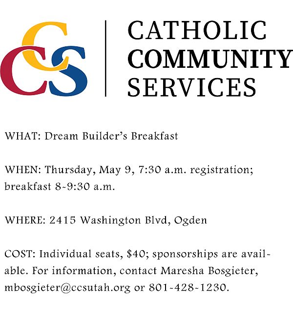 OGDEN — In 2022, 5,746 volunteers in northern Utah contributed 14,577 hours of service at Catholic Community Services to help those in need. CCS will recognize a few of these volunteers and benefactors at its annual Dream Builder’s Breakfast on May 9 at the Ogden Eccles Conference Center.