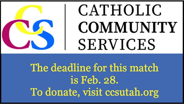 A donor has offered to match donations to Catholic Community Services of Utah up to $25,000. The deadline for this match is Feb. 28.