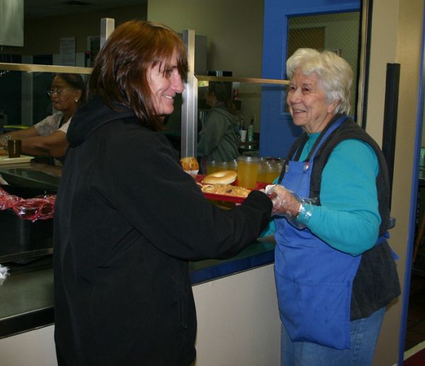SALT LAKE CITY — Florence Holtshouser has been feeding the hungry in the Salt Lake City for more than 60 years and is known for her smile. Most days during lunch she can be found standing outside the kitchen window at Saint Vincent de Paul dining hall and "as the trays come out, she hands them to the homeless person, looks them in the eye and says ‘hello’ and ‘have a good day,’ and you can tell by her voice and her sweet demeanor that she really means it," said Dennis Kelsch, Catholic Community Services Basic Needs Services director, who oversees the dining hall. "They know her well and they know her by name. I think for the homeless who go through so much on the streets, to have a steady person that they see every day, who is kind to them, offers them one corner of stability in their lives. I think she is a spokesperson for St. Vincent and the Catholic diocese." "She has a smile and a ‘hello’ for everyone; she is a true Christian woman," said Jackie Harover, Ladies of Charity president of Our Lady of Lourdes Chapter, who has known Holtshouser for 35 years. "She always has a kind word to say about everybody. I’ve sung in the choir with her for years, worked with her at St. Vincent, she’s been in the altar society, the Woman of the Year, and now she is a Lady of Charity. She treats every person with respect, dignity and kindness." Holtshouser is a hard-working volunteer, said Jeff Bailey, CCS Food Services manager. "She puts a grin on my face and I love her. She is good with everybody; all of our volunteers, the clients – everybody loves her. She brings a smile to everybody’s face." John Wirth, a food service employee, is blessed to have met Holtshouser, he said. "She is an angel incarnate," he said. Holtshouser was born and lived in Providence, Utah until she "married a good-looking Catholic sailor at Saint Thomas Aquinas Catholic Church and left," she said. Holtshouser’s family belonged to the Church of Jesus Christ of Latter-day Saints, and, although she promised to raise her six children in the Catholic faith and she prefers to worship in the Catholic Church, she isn’t a member of the faith, she said. "But I remember when I was baptized as I was brought up out of the water that there is only one baptism for the forgiveness of sins," she said. Holtshouser has been attending Our Lady of Lourdes Parish in Salt Lake City for over 60 years, and although she isn’t a member, she supports the Church all she can. Her children graduated from Our Lady of Lourdes School, five of them graduated from Judge Memorial Catholic High School and one from Saint Mary of the Wasatch. Her daughter is a Holy Cross sister and five of her grandchildren are also Judge Memorial graduates. Holtshouser took her children with her to serve the poor as she moved from site to site with St. Vincent de Paul, beginning more than 60 years ago in the basement of the building east of the Cathedral of the Madeleine. In the 1980s, what was then the St. Vincent de Paul Thrift Store on 200 West began serving soup and bread. It was destroyed by a fire in 1986 and rebuilt in 1987 as the St. Vincent de Paul Center at its current location. Holtshouser also worked in the Our Lady of Lourdes School lunch room for many years and in the Judge Memorial bookstore for 40 years before retiring in 2008, "but during the summer and on the school holidays, I would go down to St. Vincent to serve meals," she said. "As I greet the poor, I see the eyes of Jesus in them and think ‘Oh, but for the grace of God go I.’ And when I leave I have a thousand more blessings each day. The people I work with have become my extended family." Holtshouser learned the gift of giving from her mother, she said. "When my mom would bake a big batch of cookies or donuts, my brothers and sisters and I would all have to take plates to the elderly in the neighborhood. Helping others became my pleasure and my joy." Holtshouser will be recognized for her many years of service on Nov. 7 during the annual CCS Humanitarian Awards Dinner, at which she will be presented with the Unsung Hero award.