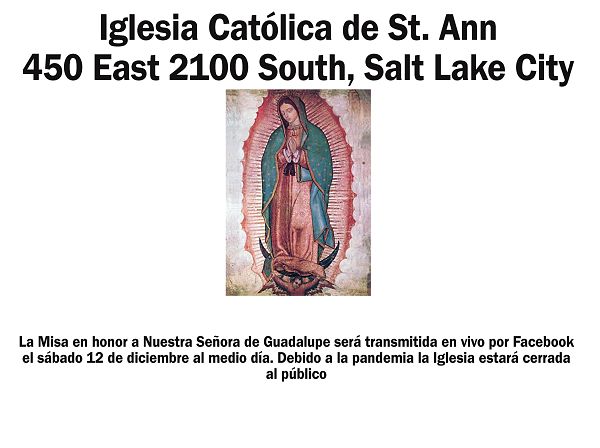 SALT LAKE CITY — La Fiesta de Nuestra Señora de Guadalupe, Patrona de las Américas, se celebrará el sábado 12 de diciembre. A pesar de la actual pandemia, varias parroquias celebrarán la festividad, aunque con algunas restricciones. Para información sobre celebraciones específicas, contacte a su parroquia directamente.