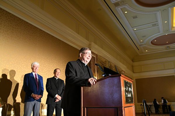 Al comienzo de la cena Katherina Holzhauser, presidente de la cámara de fideicomisarios de CCS habló sobre el mensaje del año pasado del Papa Francisco durante el Día Mundial del Pobre, el cual reflejó un texto del libro del Tobit que incluye la exhortación “No podemos dar la espalda al clamor de los pobres.”