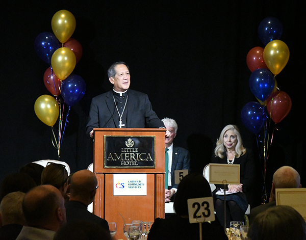 CCS brinda una variedad de servicios a los necesitados en el área de Salt Lake y de Ogden. Durante la cena el padre John Evans, presidente de la Cámara de Consejeros de CCS, ofreció un breviario de parte del trabajo de CCS durante el año pasado. Los servicios de Inmigración y refugiados de CCS sirvieron a 661 familias y personas, incluyendo a personas de Afganistán y de Ucrania, mientras que el Programa de apoyo temporal par refugiados coloco a 103 refugiados con familias temporales. El comedor de St. Vincent de Paul en Salt Lake City sirvió más de 85,000 comidas y envió 336,000 comidas a los centros para indigentes del área; el centro para indigentes Weigand sirvió a un aproximado de 169 personas por día, ofreciendo recursos como laboratorios computacionales, regaderas, artículos de higiene, ropa. Cortes de cabello, dijo el padre Evans, quien también es el párroco de la Iglesia Católica de St. Thomas More en Cottonwood Heights.