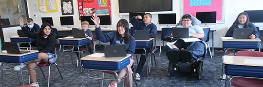 “We have a great class this year,” said their teacher, Natalie Benson. “I’m really impressed about where I met them at and where they have reached today. They’ve overcome so much, even in the course of a year. There’s some physical disabilities as well as some educational struggles that these students have had, but I always see them work their hardest and see them push forward even when they don’t fully get it. They’re equipped to ask questions; they really want to really move forward.”