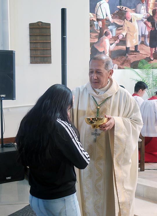 “Cuando Dios los llama y ustedes ofrecen su testimonio, no se lo quedan en sus corazones,” dijo el Obispo. “Dios nos dio la fe para proclamar al mundo y a los demás que Dios nos ama.”’