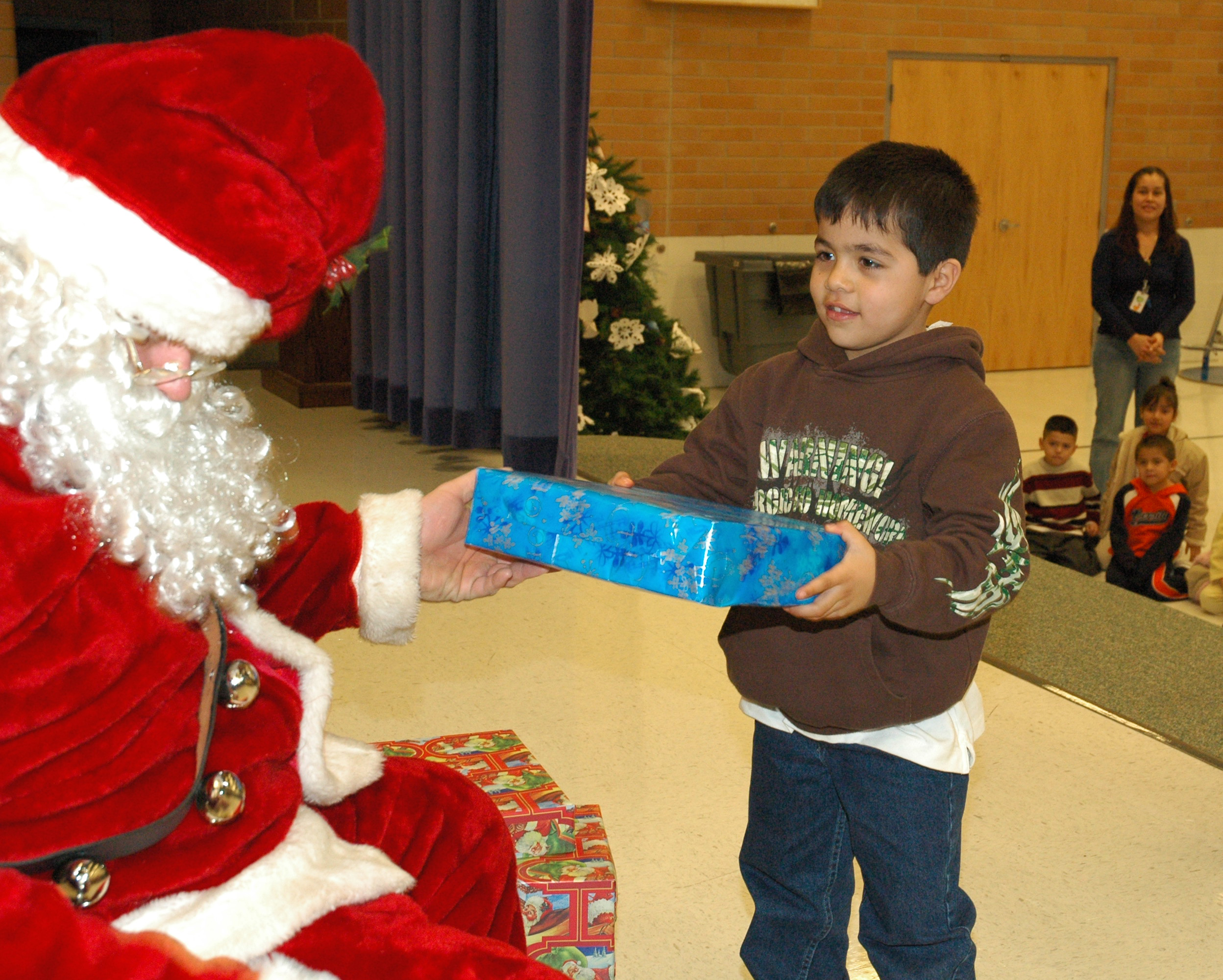 Ellos les dieron regalos a cada niño de la escuela primaria Anna Smith Elementary School en Wendover, y la mayoría, sino es que todos, de los estudiantes de esa escuela califican para almuerzo gratuito o a un precio reducido. Un día, al final de clases, llegaron camionetas llenas de regalos. Cuando Santa Claus salió de una de las camionetas, los estudiantes se emocionaron. Fue algo maravilloso, no solo verlo sino también participar en ello.