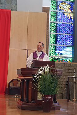 El Obispo guió a los asistentes a través de la Liturgia de la Palabra, incluyendo el Rito de penitencia, la lectura del Evangelio, oraciones y cantos. El diácono Jeremy Castellano asistió al Obispo.