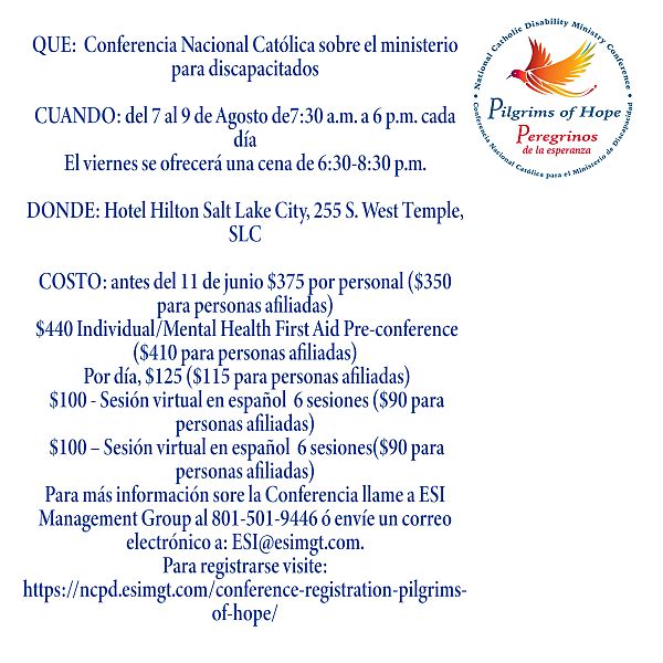 Para registrarse visite: https://ncpd.esimgt.com/conference-registration-pilgrims-of-hope/