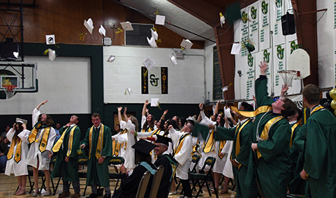 OGDEN — The 46 members of Saint Joseph Catholic High School’s Class of 2025 processed into the gymnasium for the May 17 commencement ceremonies with “Pomp and Circumstance” sounding from the speakers as they filed under an arch made of green, gold and black balloons and took their seats. Family and friends filled the bleachers, with others watching the livestream in two other buildings on the campus.