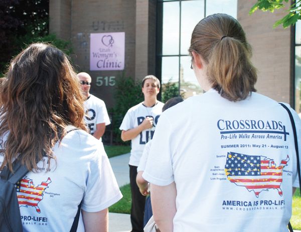 SALT LAKE CITY - As part of the 2011 Central Walk, Crossroad walkers from throughout the United States visited different parishes in the Diocese of Salt Lake City from June 10 to June 12. This was part of four pro-life walks across the U.S. in 2011, which are made by youth who witness to the sanctity of all life. The organization is faithful to the teachings of the Roman Catholic Church but participants from all faiths are welcome. Most of the participants are college students; they walk from California to Washington, D.C. "It’s important because as Catholics it is our belief that God made life to live and we don’t have the right to kill any life," said Becky Frybarger, a college student from Reno, Nev. In Utah, the walkers celebrated Mass at the Cathedral of the Madeleine with the Most Rev. John C. Wester, Bishop of Salt Lake City, on June 11. "I’m very happy to welcome many of our pro-life marchers and walkers who are walking across the country," said Bishop Wester. "I’m glad that you are here with us and we pray with you today." After Mass the walkers gathered in the Cathedral’s courtyard to share breakfast before starting their walk to an abortion clinic. Veola Burchett, director of the Diocese of Salt Lake City Family Life Office, welcomed the walkers, thanking them for the work they do to make people realize the importance of life. Burchett also shared a personal story about being pro-life. "About two years ago our youngest son and his wife got pregnant and they were really excited and when they went for the ultrasound, they found out that the baby had cleft feet," she said. While her son and his wife were sitting in the doctor’s office, the doctor gently led the conversation toward abortion, Burchett said. "They realized that they were talking about their baby and that they were going to have their baby no matter what," said Burchett. "Just to see that little baby today… We fixed his little feet; he is beautiful and he is just one of the joys of our lives. I’m so proud of my son and of his wife for having said ‘This is our baby and no matter what, God is good.’" After the breakfast, the walkers proceeded to an abortion clinic with prayers, rosaries, and faith. The walkers asked God for the salvation of lives. "I feel that if I took the mentality that nothing is going to change – if I just sit on a fence – nothing is going to be done, so I’m taking the initiative and hopefully it’ll bring the change in this country," said Jared Rhods, a 24-year-old student from Kentucky. In addition to the Mass at the Cathedral and praying outside the abortion clinic, the Crossroads walkers spoke at the parishes of Saint Ambrose, Blessed Sacrament, Saint James the Just, Saint John the Baptist, Saint Joseph in Ogden, Saint Therese of the Child Jesus and Saint Mary. Dave Bathon, national director of Crossroads Inc., said these walks show love to all women and men, mothers, fathers and children. "We are really trying to show love, to spread the gospel of life, to witness to the dignity and sanctity of every human life, especially the unborn," said Bathon.