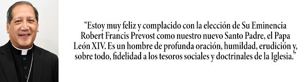 Estoy muy seguro de que nuestro nuevo Santo Padre, el Papa León XIV, nuestro Sumo Pontífice y nuevo Vicario visible de Jesucristo, Siervo de los Siervos de Dios, nos inspirará a todos hacia una mayor fidelidad al Evangelio y a la gran Misión de Evangelización en el mundo de hoy. Este «Hijo de San Agustín» nos asegura que «el mal no prevalecerá», y que podemos confiar en la bondad y la misericordia de Dios.