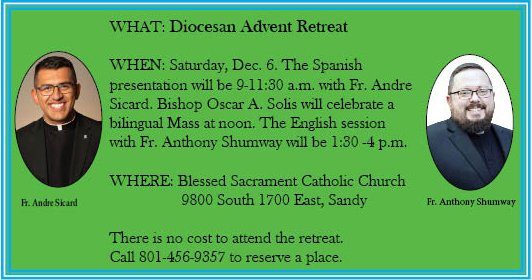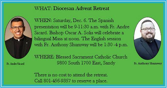 Fr. Shumway invites all Utah Catholics to attend the Advent retreat, “focusing on our hope and the coming of Christ in the Christmas season, to experience hope in a time where hope can be a struggle and where trust can be limited, to come and experience the hope and the trust that Christ gives each and every one of us,” he said.