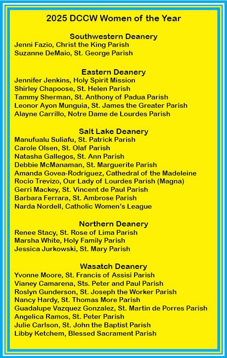 SALT LAKE CITY — Women from parishes and missions throughout Utah were honored at the 2025 Women of the Year banquet hosted by the Diocesan Council of Catholic Women on April 26 at the Little America Hotel in Salt Lake City.