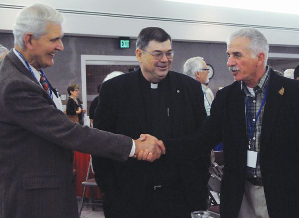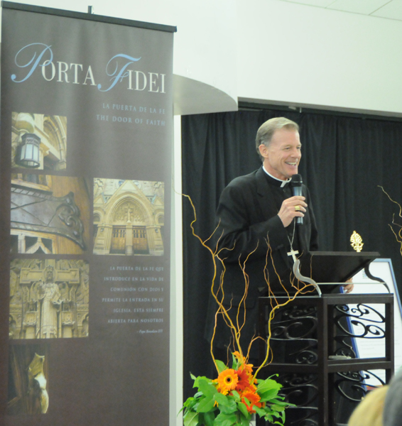 SALT LAKE CITY — Those who volunteered their time for this year’s Diocesan Development Drive were celebrated at an Oct. 16 dinner at Saint Vincent de Paul Parish. "Many of you have the generous attitude that DDD is a way of life," said Shannon Lee, DDD director. "You are all so dedicated to your parish, to your pastor, to our bishop and thus the Diocesan Development Drive. We are so very grateful for your service, for your dedication, for the work you have done for Bishop Wester and for the staff." Lee singled out for recognition Patrick Gotti, who has chaired the Saint Rose of Lima Parish DDD for 21 years. Gotti "truly made the DDD a way of life," Lee said. "Over these past 20 years, Pat has brought in $1,393,831 to the Diocesan Development Drive from Saint Rose of Lima." Overall, as of Oct. 12, the 2012 DDD has received $2,019,393 in pledges and $1,716,926 in payments from 8,258 households in the diocese, Lee said. "We are a month ahead of our DDD pledges compared to last year at this time. All of this has taken a lot of hard work and dedication on your part and we thank you for your commitment to this year’s Diocesan Development Drive." The DDD, which began in 1966, raises funds for the bishop’s many ministries, programs and services, including support for seminarians, religious education and the prison and detention ministry. The Most Rev. John C. Wester, Bishop of Salt Lake City, echoed Lee’s thanks at the dinner, which was attended by representatives of 26 parishes and missions throughout the diocese. "We take none of you for granted," Bishop Wester said. "We know that it’s a sacrifice, even after 20 years. Even one year is a sacrifice. It’s not easy to talk to people and to represent the program. It takes a certain amount of risk and going beyond your comfort zone, but you’re truly doing the work of the Lord.... Giving of our treasure is symbolically a sacrifice; it’s a giving of ourselves. It’s important, and the generosity that you engender is contagious." The theme for the 2013 DDD was announced by Lee at the dinner: ‘Porta Fidei,’ or ‘Door of Faith,’ the name of the Apostolic Letter with which Pope Benedict XVI announced the Year of Faith, which began Oct. 11. The Year of Faith "is a wonderful, wonderful opportunity to deepen in our love of the faith and to celebrate it," Bishop Wester said. "It’s a wonderful opportunity for us to thank God for something else that we pass on, not just that attitude of gratitude, that attitude of generosity, but our faith."