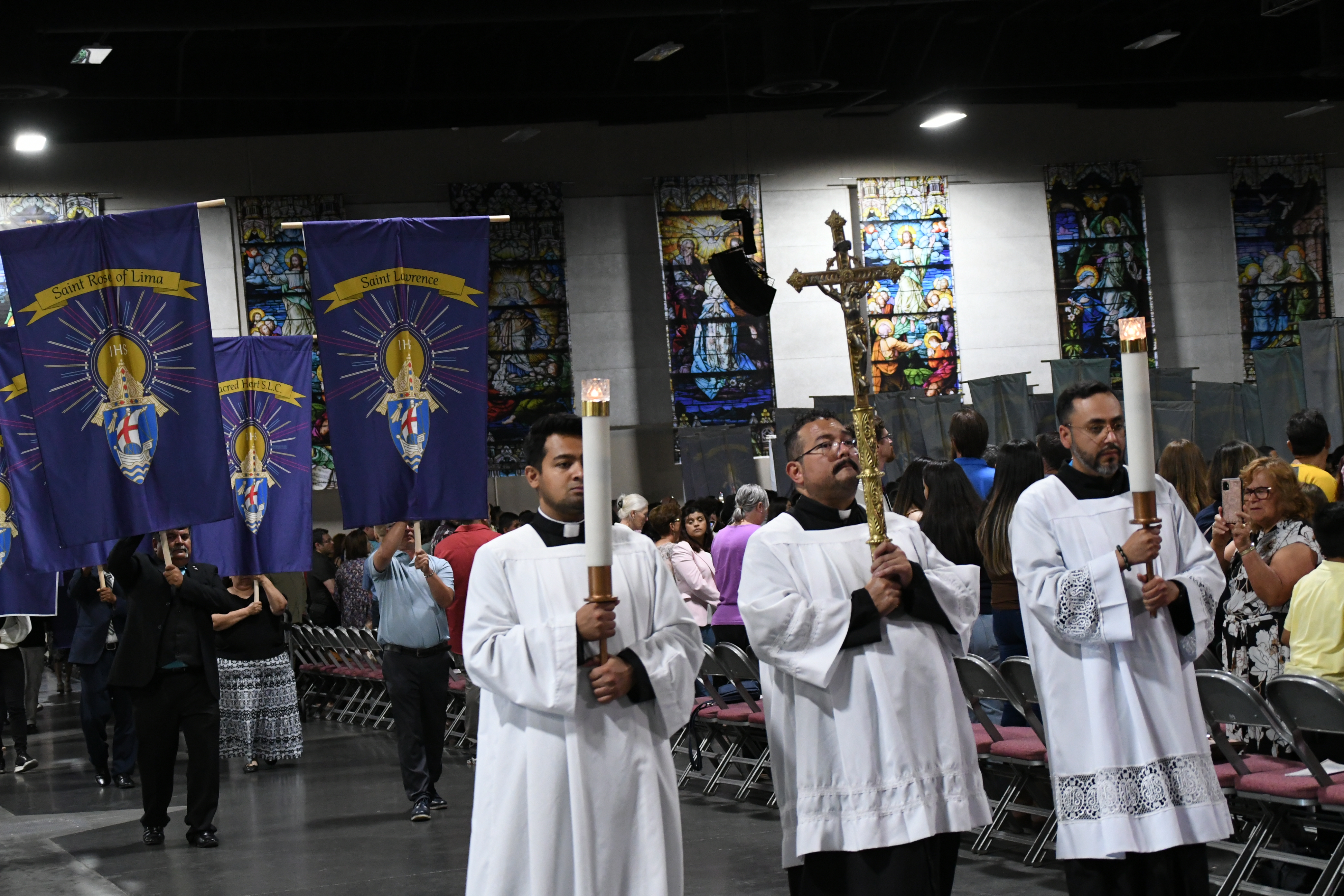 Banners with the names of all the parishes and missions in the diocese were carried as part of the Eucharistic procession that concluded the Mass.