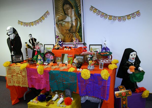 Día de Los Muertos – the Mexican Day of the Dead – is celebrated annually on All Souls Day. Outside the Diocesan Office of Hispanic Ministry in the Diocesan Pastoral Center in Salt Lake City, Maria-Cruz Gray, director, and her staff and volunteers assembled the traditional Day of the Dead altar (above, left). Filled with symbols both secular and religious that honor the memory of those who have died over the past year, the altar and the area surrounding it are dressed with figures, crosses, candles, food, and candies, all in groups of three, representing the Father, Son, and Holy Spirit, Gray told the Intermountain Catholic. Above right is a separate altar dedicated to the many women of Juarez, Mexico, who have died violently or disappeared over the past year. A sign on the altar reads "We deserved to have lived without violence," in Spanish and English. The violence being perpetrated against women in the Juarez area is both frightening and mysterious. "In my opinion, women are being targeted because making victims of women creates chaos and fear in that society," Gray said. Día de Los Muertos celebrations often take place at the grave sites of loved ones and include a hearty meal enjoyed by the living, dancing, storytelling, and prayer. Memories are shared and the dead’s most distinct characteristics are celebrated. IC photos by Barbara S. Lee